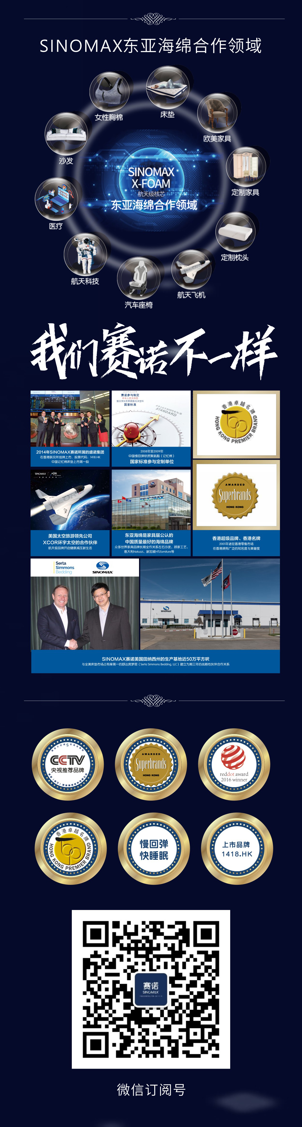 SINOMAX赛诺不断创新、研究太空记忆棉健康家居用品,致力于成为全球健康家居引领者。SINOMAX赛诺太空棉