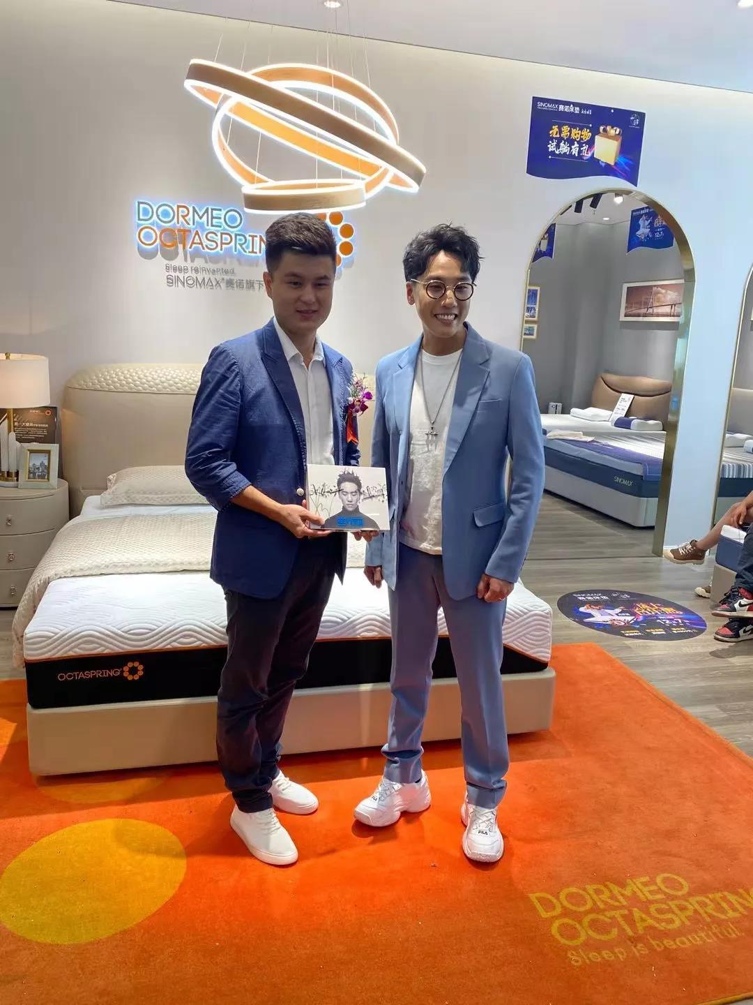 最后,陈乐基在 SINOMAX 赛诺床垫 · 海口店内,与热情的粉丝们合影留恋,并赠送了自己新发售的歌曲专辑。