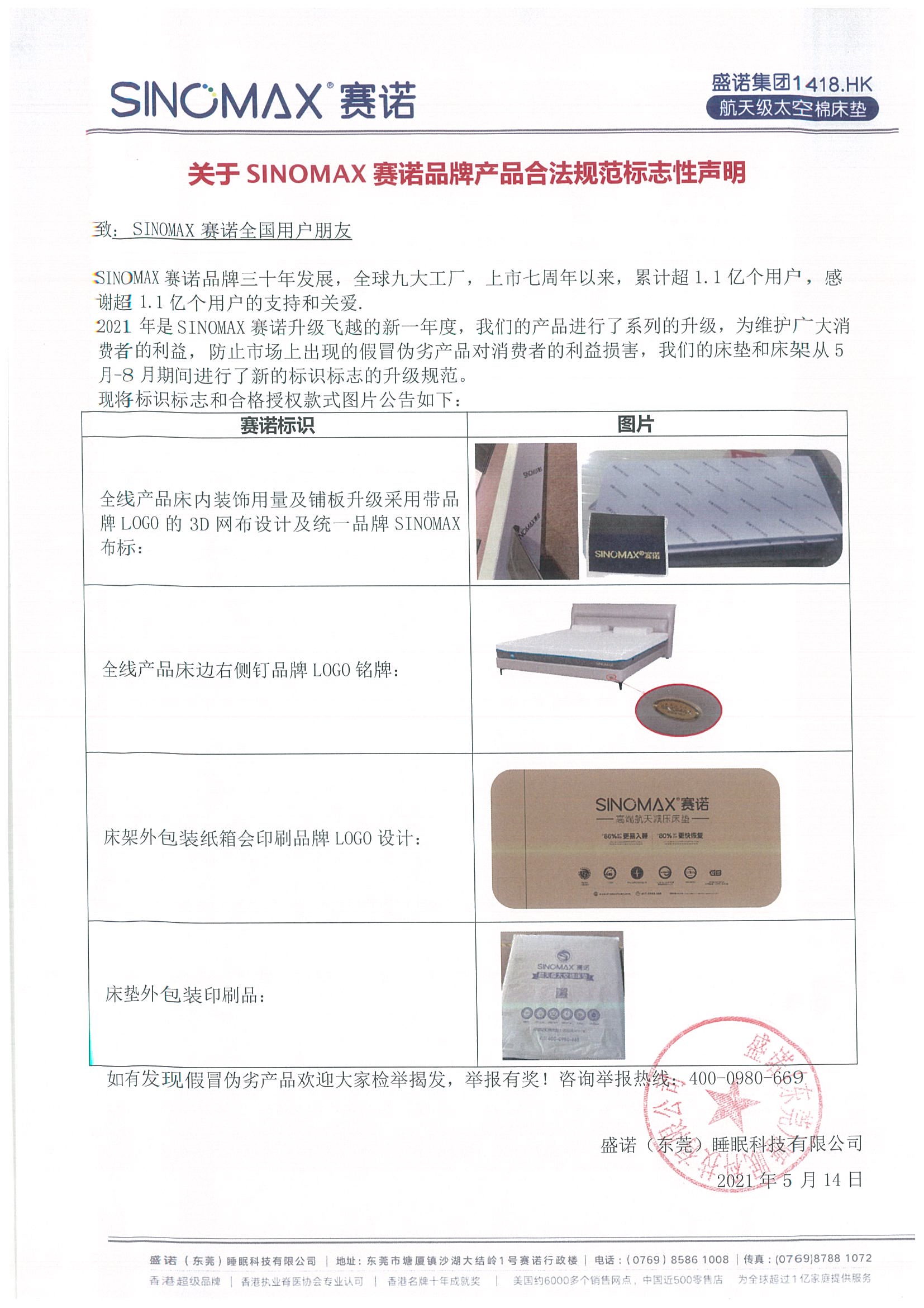关于SINOMAX赛诺品牌产品合法规范标志性声明