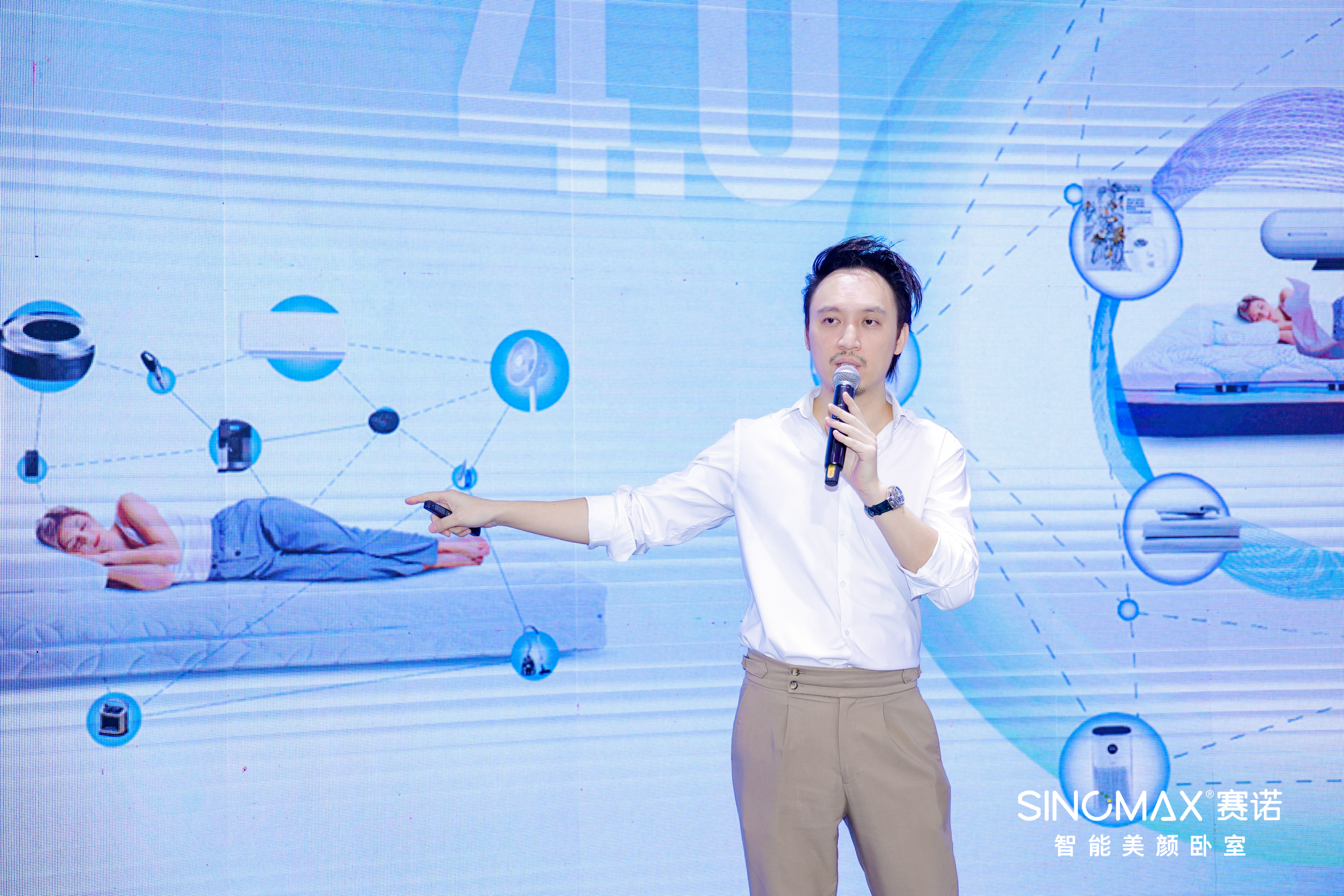 接下来,赛诺家居总经理林仕超先生,在“智能美颜卧室”的推荐环节上,从洞悉用户心智、美容觉发展历史、市场发展趋势及客群角度上分析,赛诺新赛道的目标人群与美妆行业的用户群,是高度重叠的。美+梦是一对CP,共同需求是美眠、美颜,都是颜值经济。